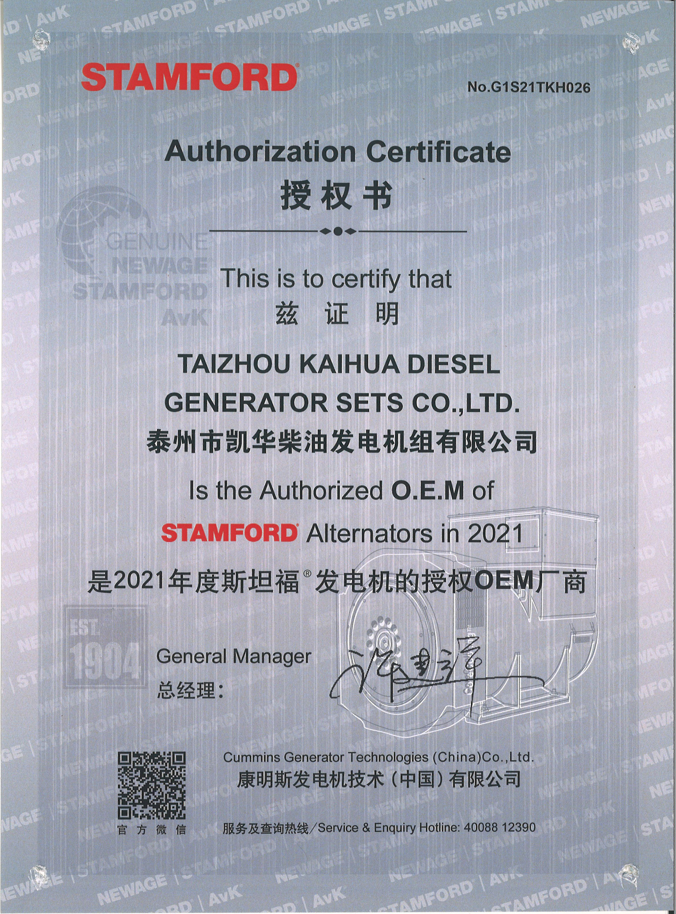 泰州市凱華柴油發(fā)電機組有限公司創(chuàng)建于2003年,是一家集柴油發(fā)電機組燃氣發(fā)電機組的研發(fā)、生產(chǎn)、銷售為一體的高新技術(shù)民營企業(yè),公司座落于“漢唐古郡,淮海名區(qū)”,具有“鳳凰城”美稱的祥泰之州——江蘇省泰州市,地處中國經(jīng)濟最發(fā)達的長三角經(jīng)濟圈,水陸空立體交通,地理位置十分優(yōu)越。公司目前注冊資本金11800萬元人民幣,生產(chǎn)基地占地六十畝,現(xiàn)有各類高素質(zhì)員工一百多名,專業(yè)技術(shù)人員達46人,其中高級技術(shù)人員16人,年銷售額近6億元。 公司主營產(chǎn)品:3~3000KW陸用柴油發(fā)電機組,15~600KW移動拖車電站,12~1000KW船用應(yīng)急柴油發(fā)電機組,各種靜音型、中高壓、多機并聯(lián)、燃氣等特種機組以及進口系列柴油發(fā)電機組,可滿足不同客戶的一切電力需求,還可滿足用戶不同電壓、不同頻率的要求。凱華公司是康明斯品牌的授權(quán)代理商,專業(yè)生產(chǎn)供應(yīng)康明斯柴油發(fā)電機組。